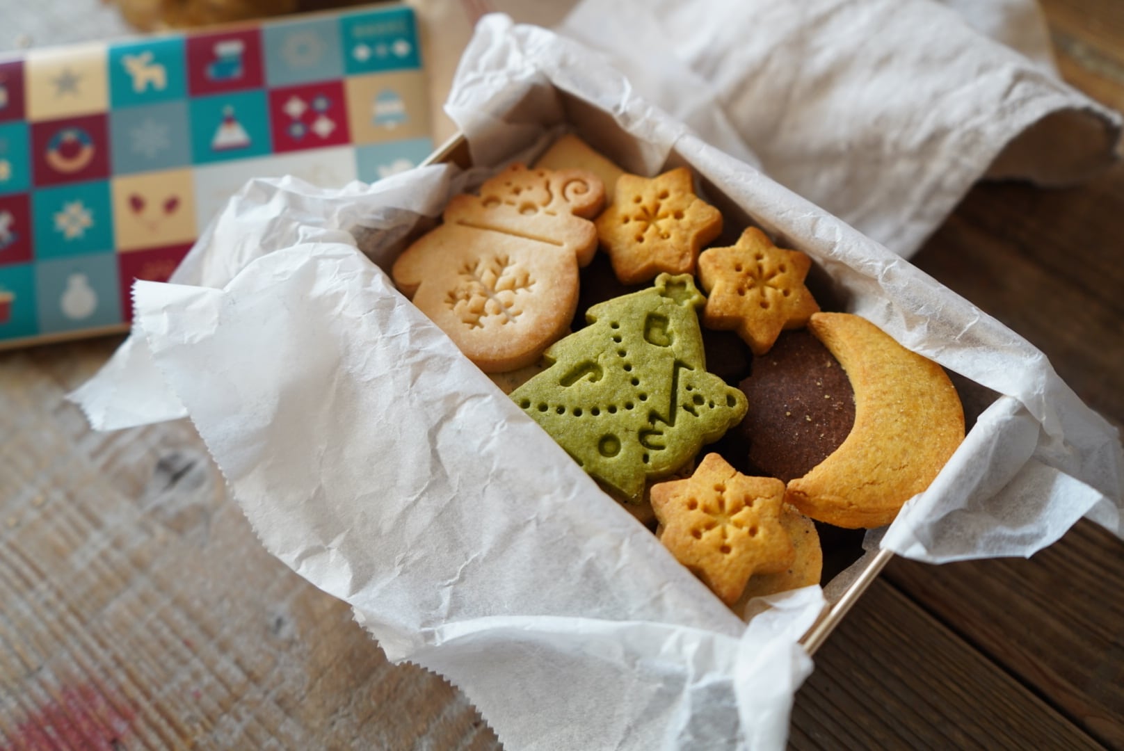 クリスマス限定の米粉クッキーが詰まった特別な缶です。